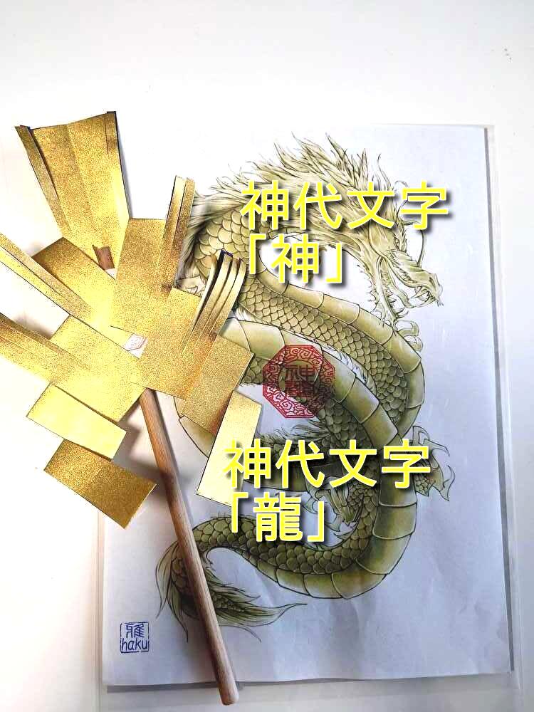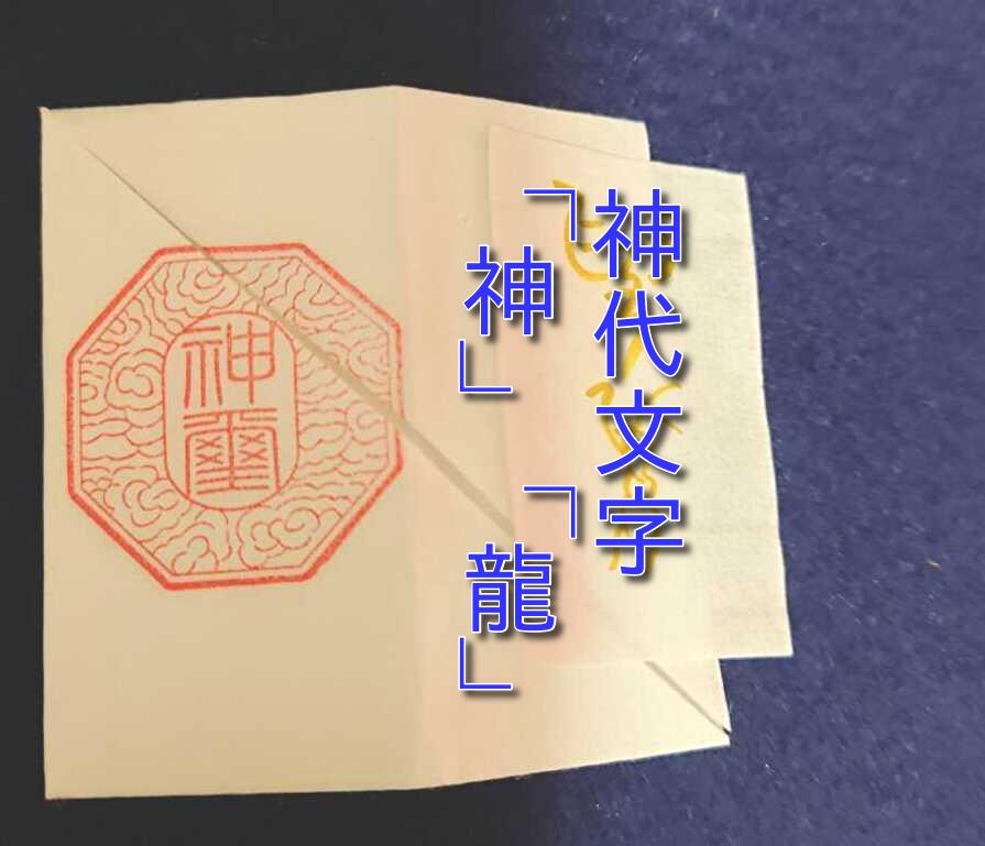 龍神御幣の上部には神代文字護符「神 龍」を書かせていただいた護符を貼り付け、本格的な龍神御幣としてご祈祷・作成させていただくことができました。
