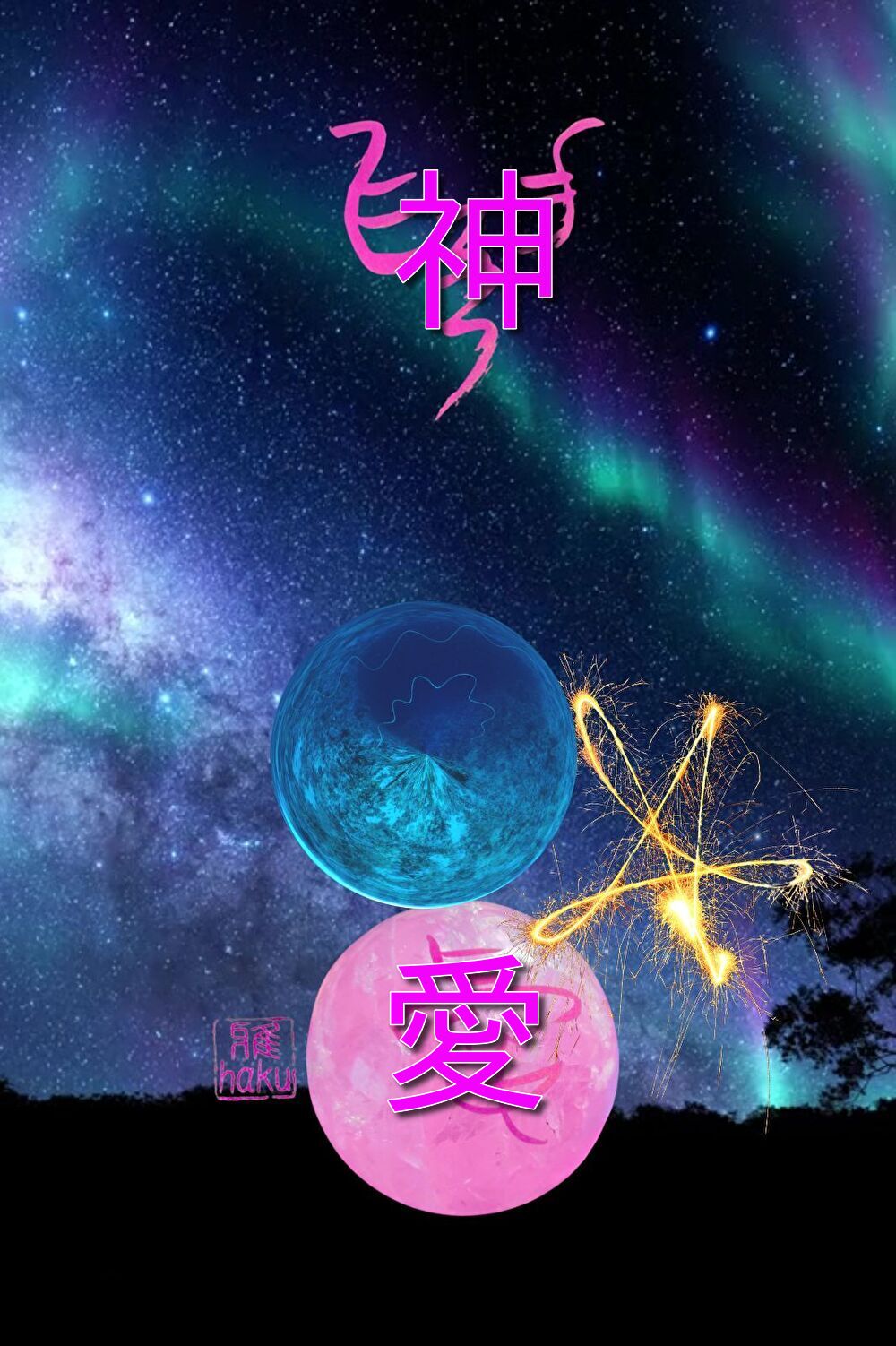 - >陰陽師 雅オリジナル★開運招福 スマホ待ち受け霊符 ⑦天の川と二つ(二人)の水晶